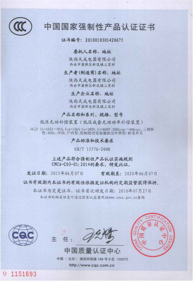 检验报告-低压无功补偿装置